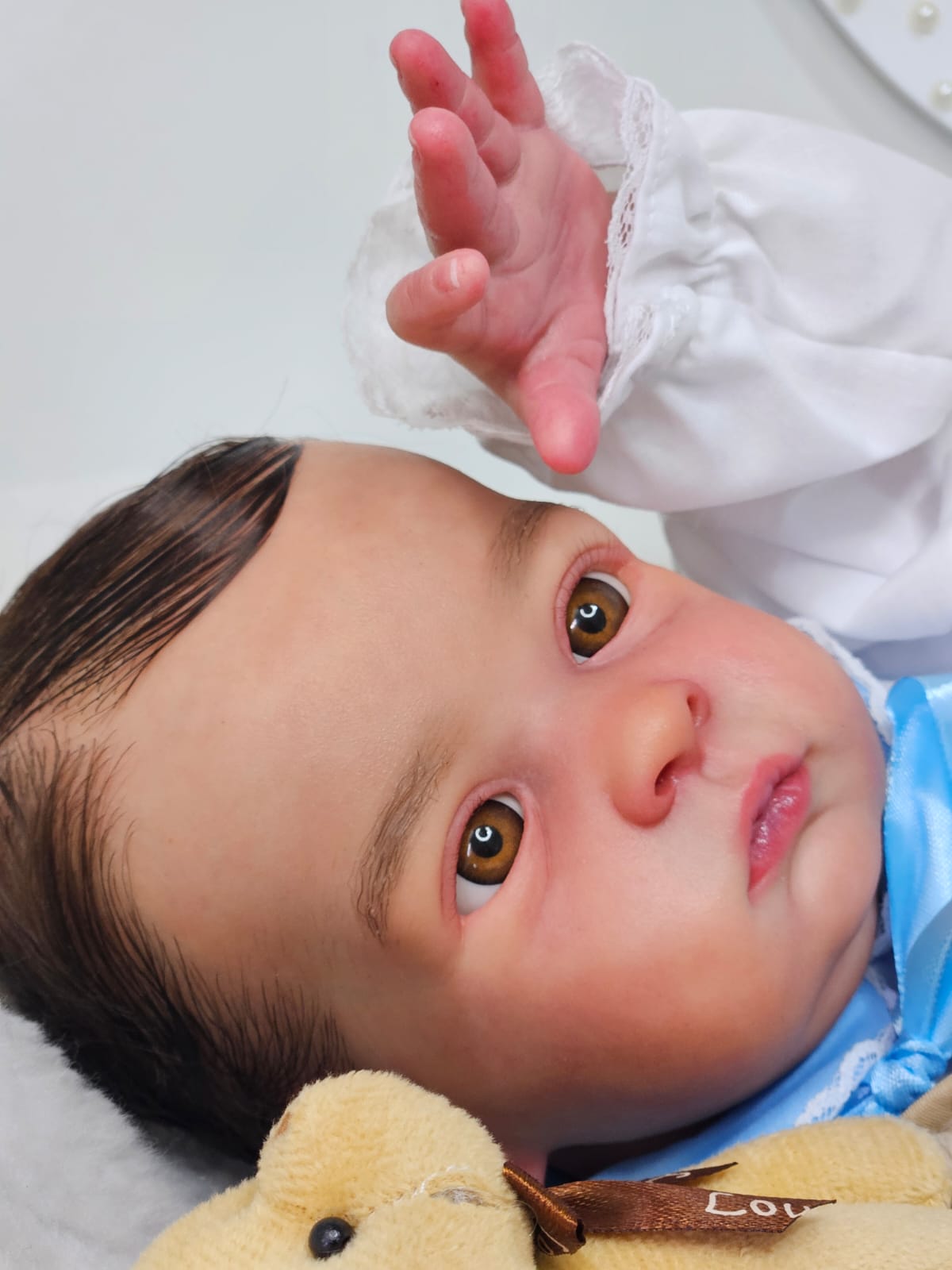 ⏩ Acompanha o bebê uma fralda (roupa da foto ou outro modelo disponível no estoque no mesmo padrão de qualidade). Uma chupeta magnética; Mamadeira com bico vedado (leite falso); Pente, escova e spray condicionador; Kit documentos; Menina acompanha brinco folheado.